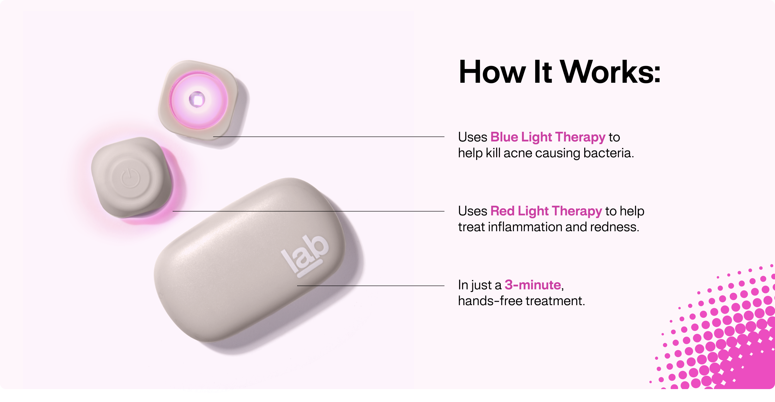 Building on our years of experience in technology and science, l.a.b. has infused innovative light therapy into your everyday skincare rituals to treat pimples, blemishes and breakouts faster and more effectively than ever. Clear up your relationship with your skin, in all of its versions, with a new routine that’s zero stress, zero effort, proven to work fast.